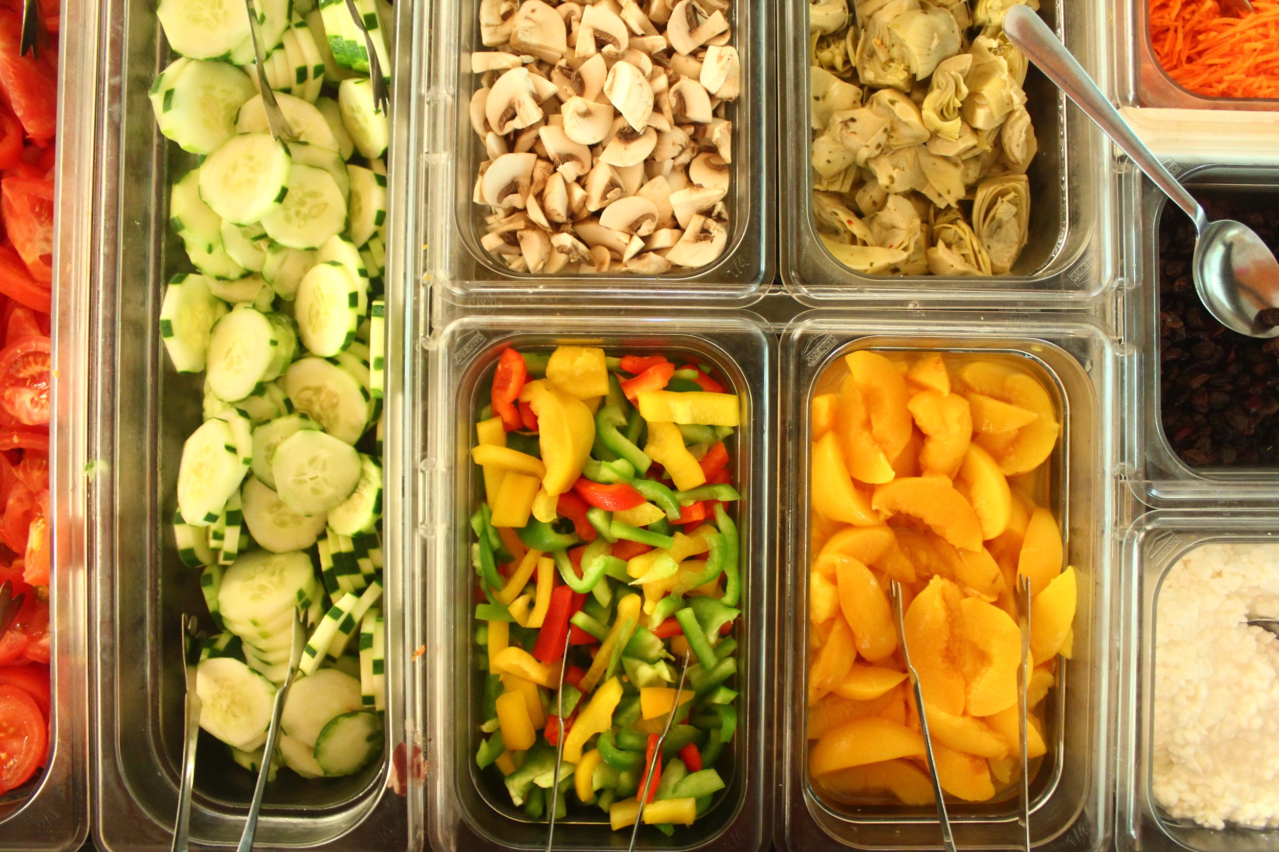 Salad bar with 20 or more vegetables, cheeses, and choice of homemade dressings