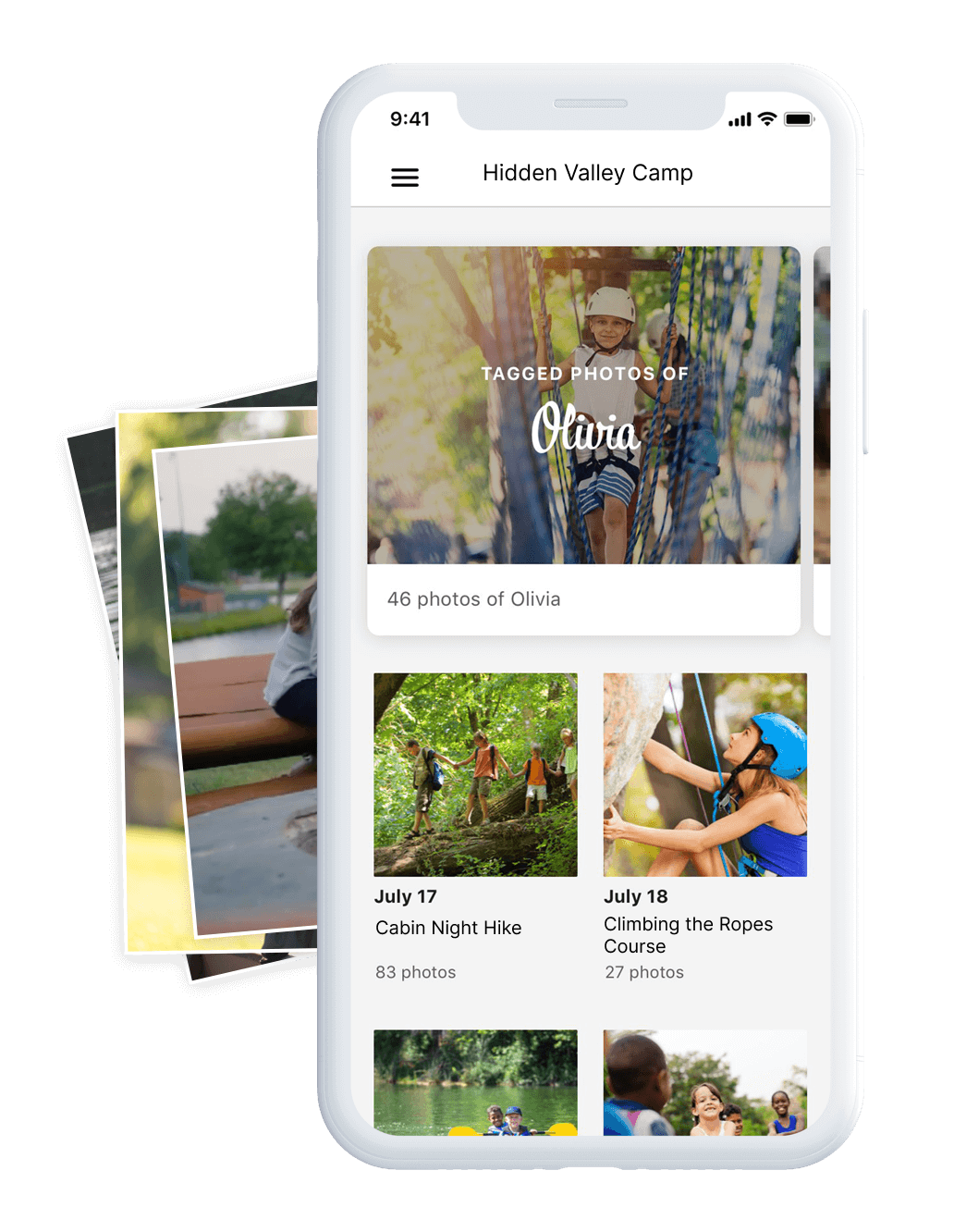 Campanion’s facial recognition technology automatically searches for your camper and tags them for you to view.