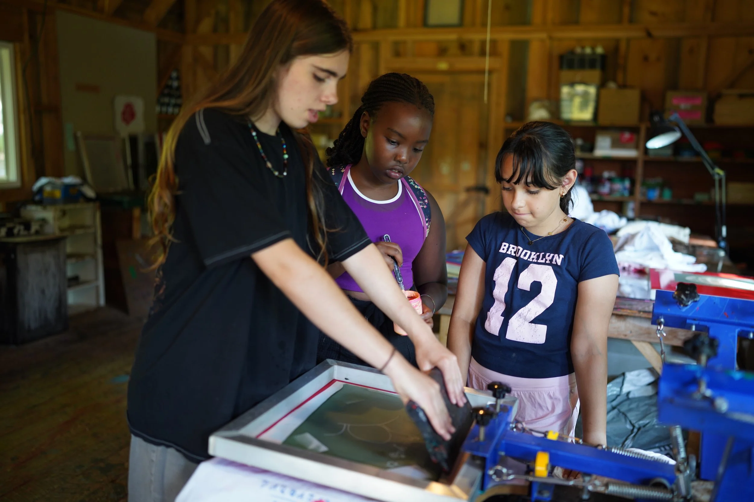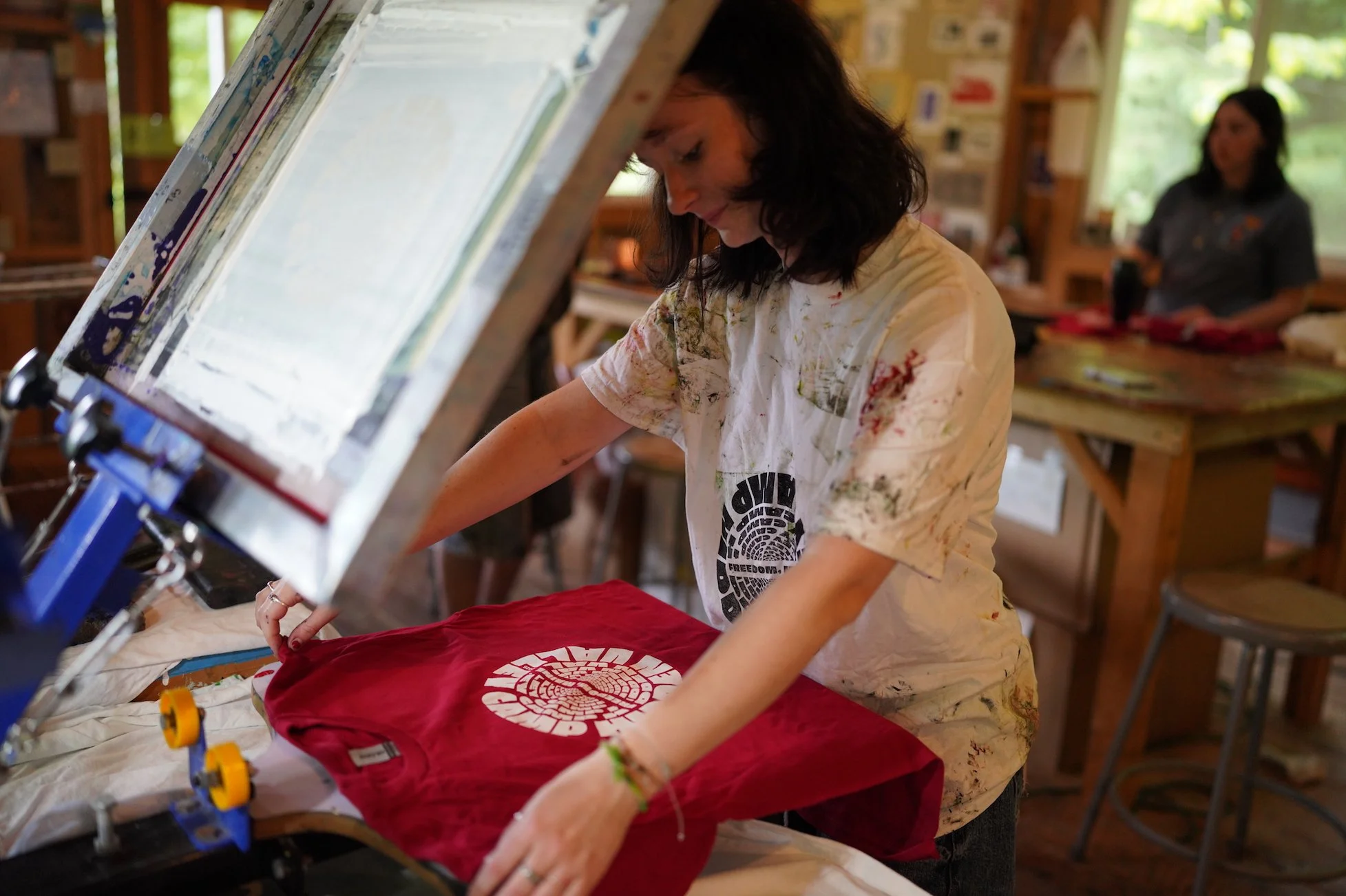 You may or may not remember that last summer, summer 2025, all of the camp t-shirts were printed during staff training in the Buckhorn. In the picture above, you can see counselors printing shirts! And below is a picture of a screen printing class. It’s never too early to start thinking up designs for shirts to print in class next summer!