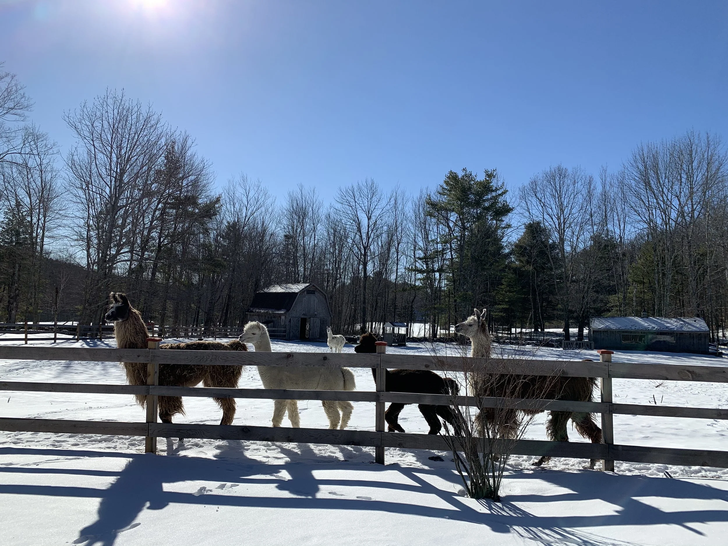 This picture is from a couple winters ago. Nevertheless, it’s always fun to see pictures of camp in the snow. Maine is home to the llamas all year round which means they experience the highs and lows of all the seasons.