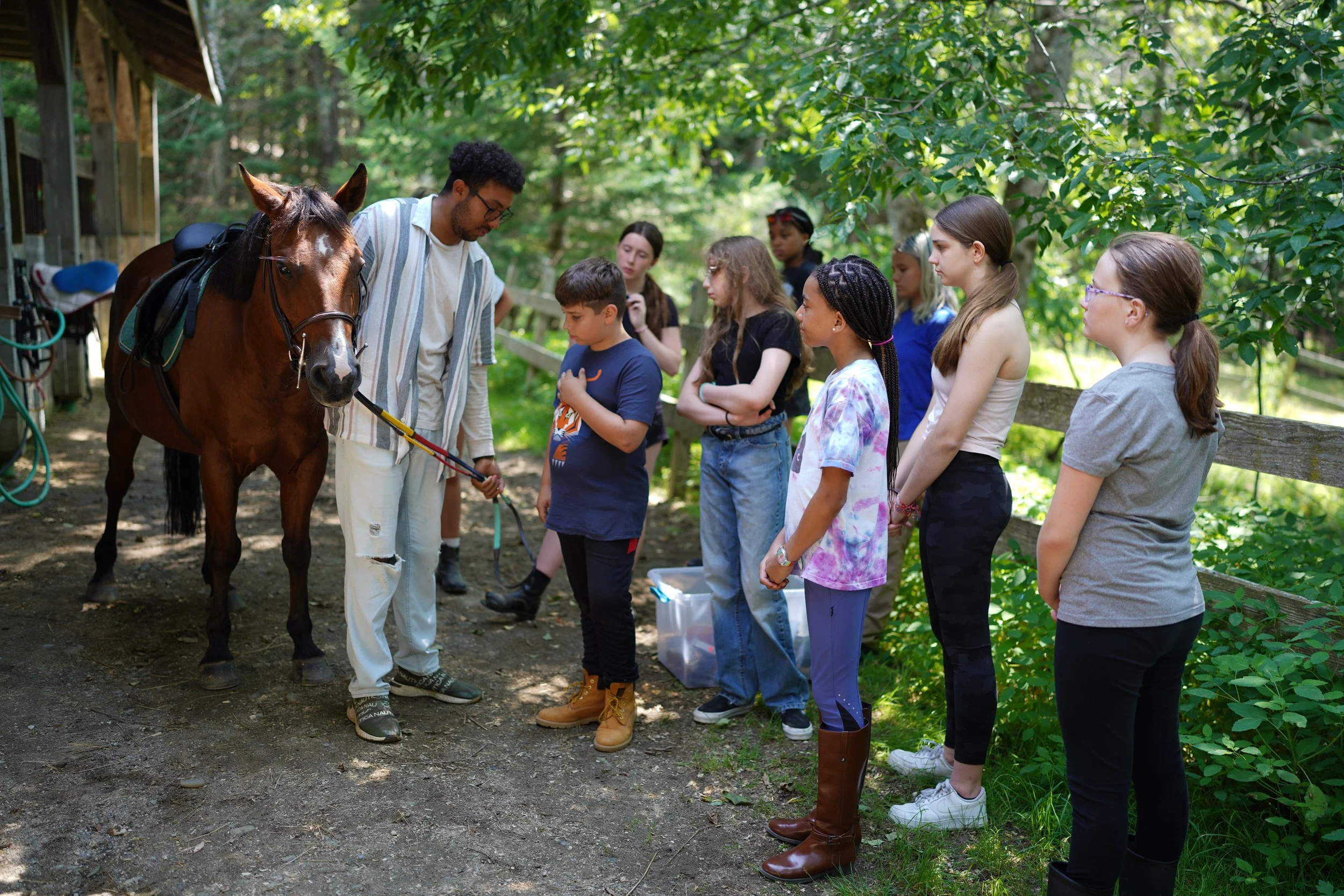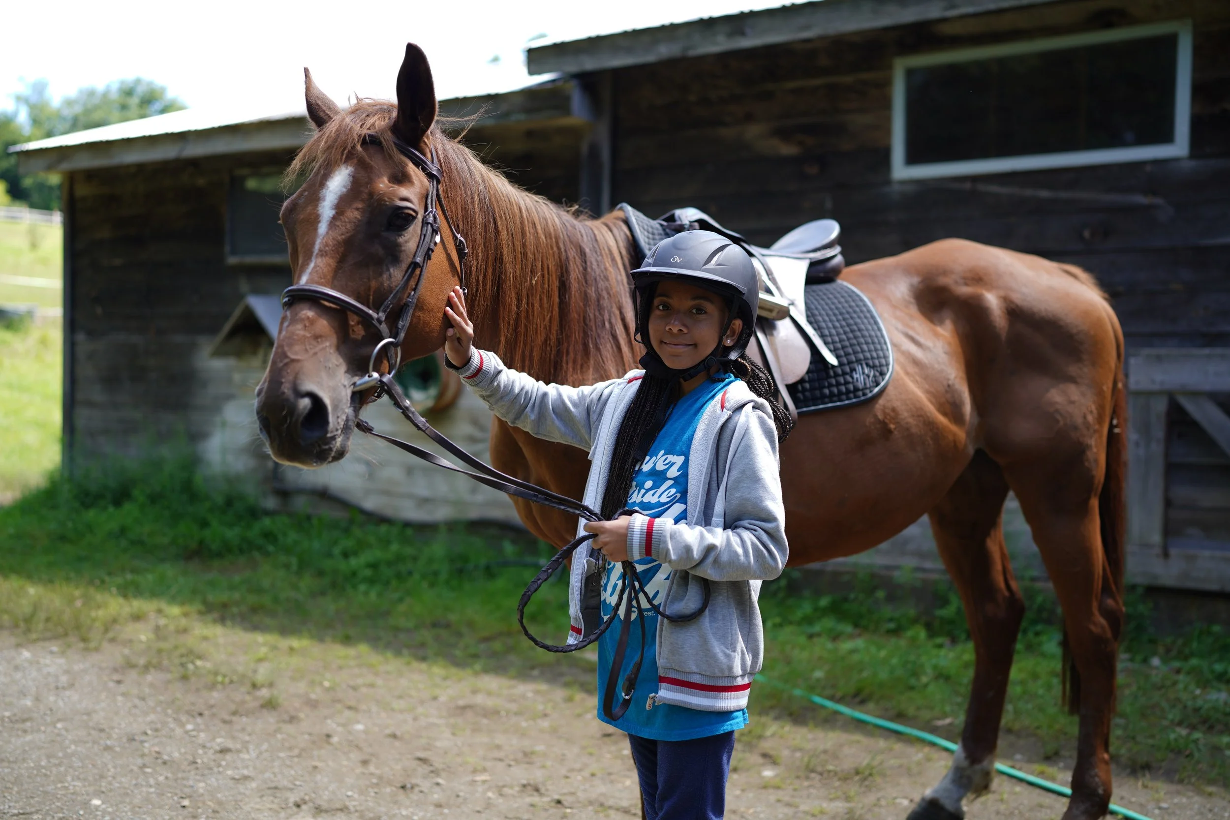 Classes are geared to all levels and include practice in our rings as well as rides on HVC’s open fields and extensive forested trails. We provide helmets and other gear; campers need only bring boots with a heel.
